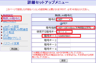 - 設定時に暗号化キー(WEPキー)として利用する文字種、キーの長さ(bit)の情報が必要な場合もあります。