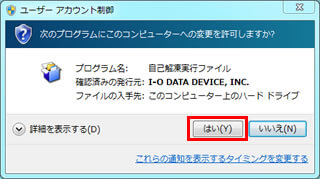 - 「ユーザーアカウント制御」画面が表示された場合は、[はい(Y)]を選択してください。