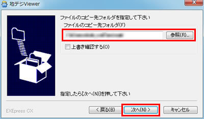 解凍先(コピー先)のフォルダを確認し、[次へ(N) >]を選択してください。