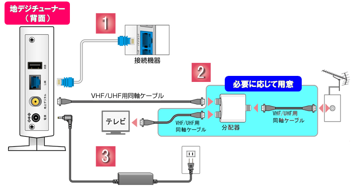 アンテナ端子が足りない場合は、分配器やケーブルを別途ご用意ください。 -