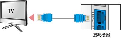 接続機器のLANポートは複数箇所ありますが、どこでも構いません。LANケーブルは別途ご用意ください。- 対応TVは下記ページをご確認ください。