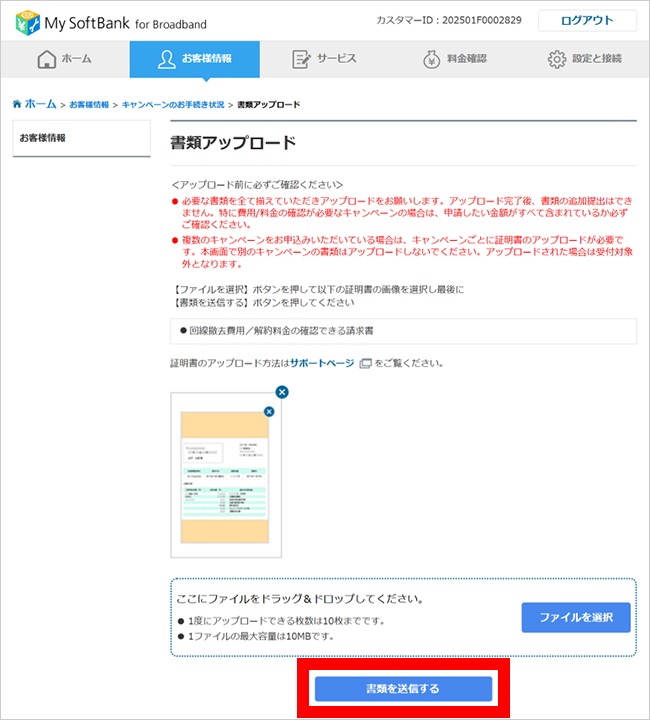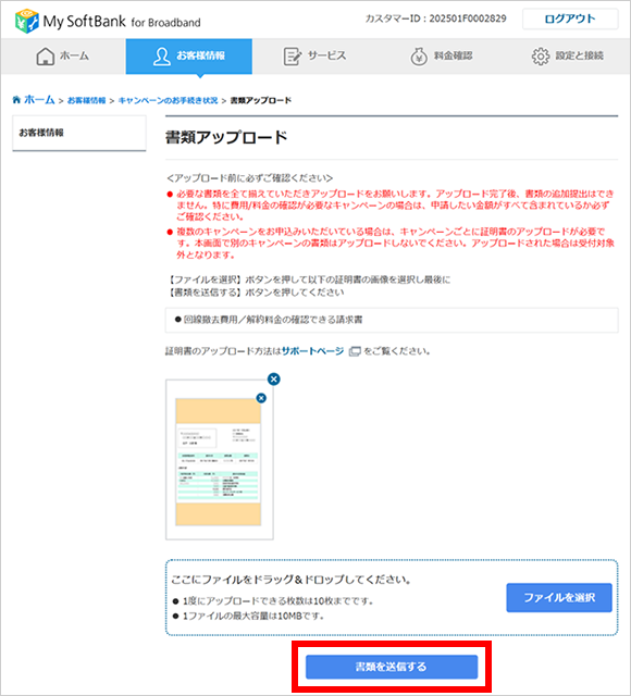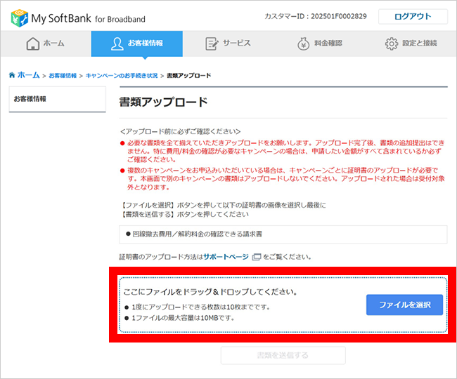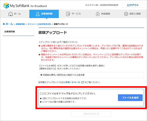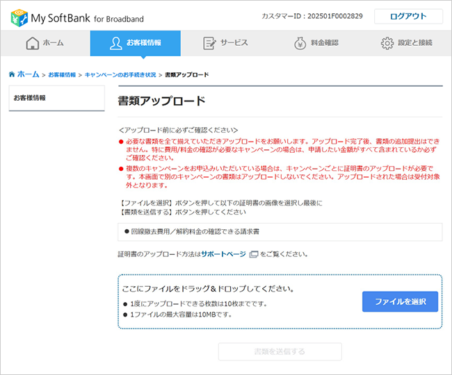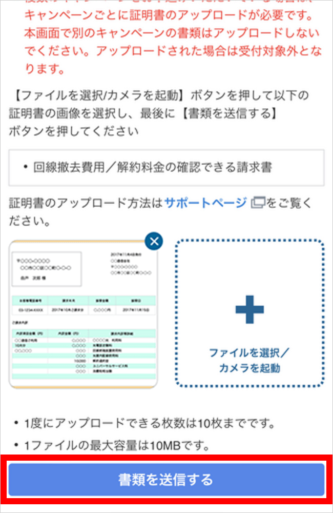 - 複数のキャンペーンをお申込みいただいている場合は、キャンペーンごとに証明書のアップロードが必要です。
