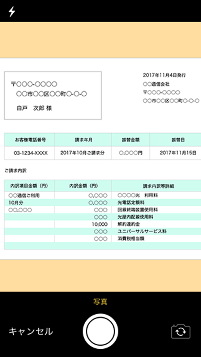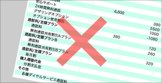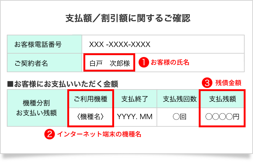 金額は確認できますが、インターネット機器の端末であることを判断するための「機種名」や「他社サービス名」の確認ができません。 - 支払額/割引額に関するご確認/分割支払金/賦払金一括清算申込書 兼 お客様控/ご利用代金請求明細書/請求書/料金内訳書/支払証明書