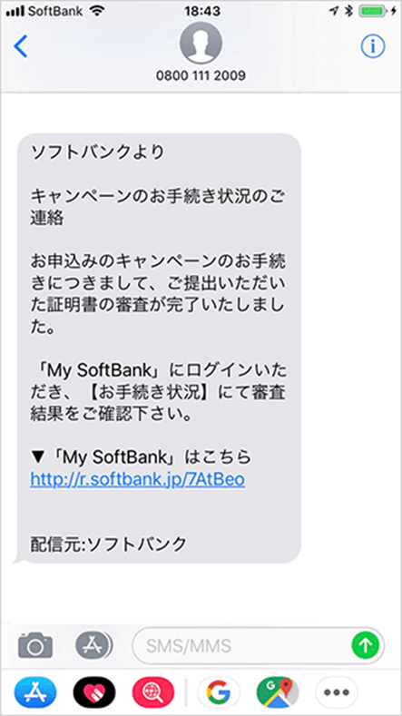 SMS(メッセージ)が届いている場合は、記載のURLからもMy SoftBankにログインできます。