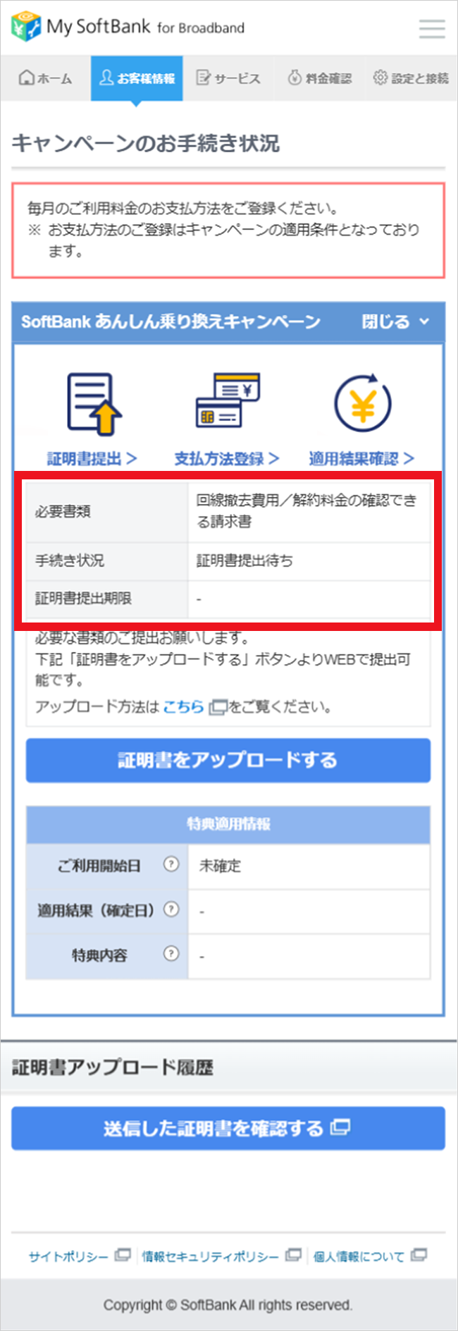 「契約確認が終了しました。特典適用確定までしばらくお待ちください。」になっていれば、証明書の提出はOKです。
