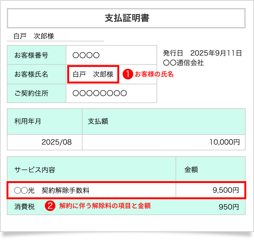 記載の項目からは「他社解約に伴い発生した」違約金/解除料/撤去費用等であることであることを確認できません。
