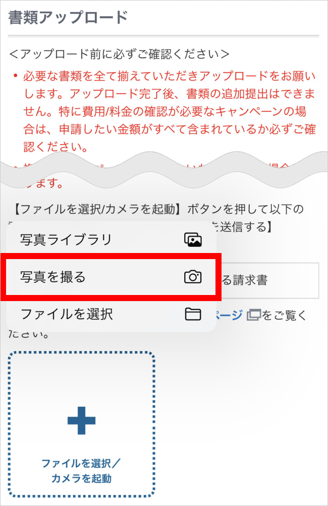 - 必要な証明書を全て揃えていただきアップロードをお願いします。アップロード完了後、書類の追加提出はできません。特に費用/料金の確認が必要なキャンペーンの場合は、申請したい金額がすべて含まれているか必ずご確認ください。