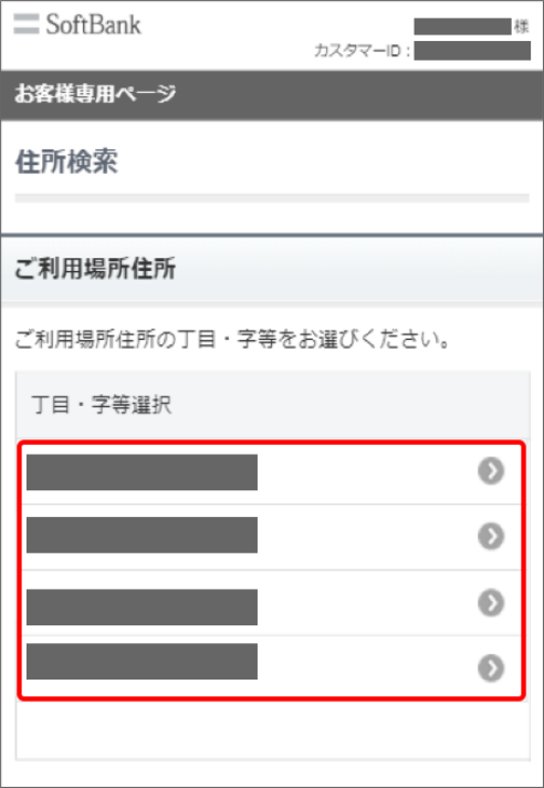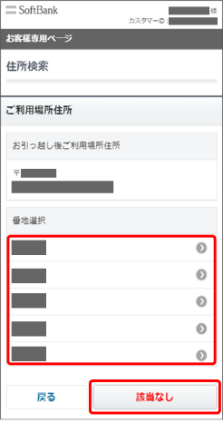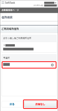 「番地」をタップ、または該当する番地がない場合は「該当なし」をタップ