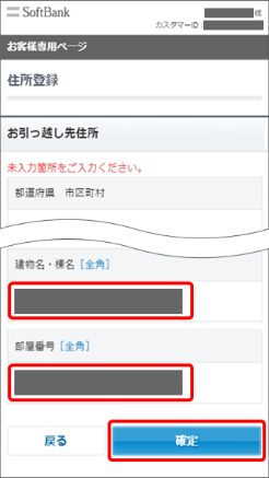「建物名・棟名」や「部屋番号」がある場合は、入力後「確定」をタップ