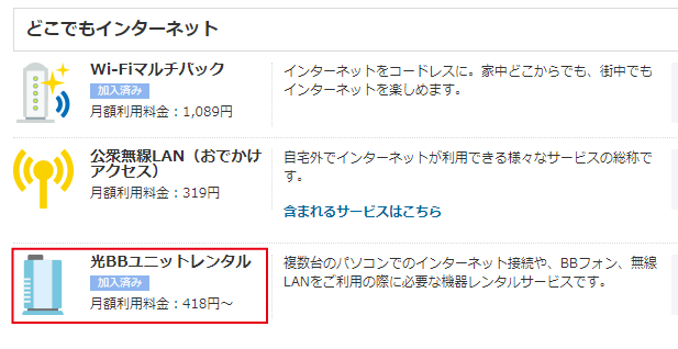 「光BBユニット」、「NTT提供機器」は以下のボタンからイラストをご確認ください。