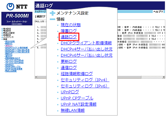 ログは最新のものから順に最大3件表示します。- 光電話(N)ご利用の場合のみ