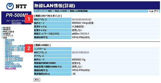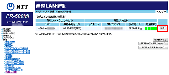 詳細情報の確認電波強度