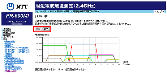 周辺電波環境測定を実施する場合は[開始]をクリックします。