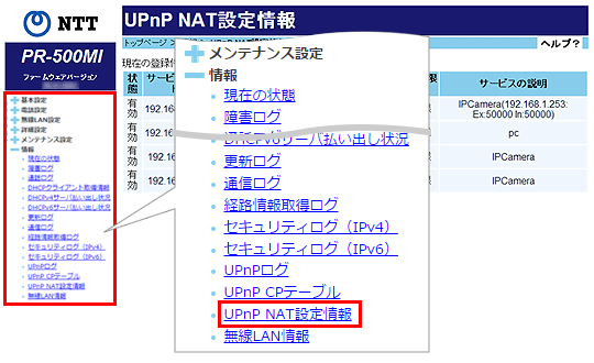 UPnP NAT設定情報
