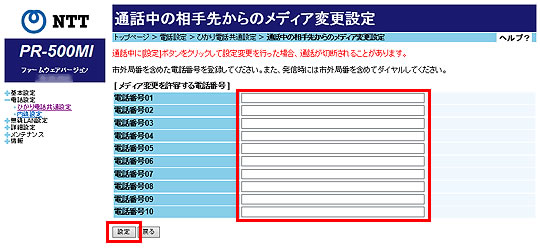電話番号をハイフン(-)なしで入力して、[設定]をクリックします。