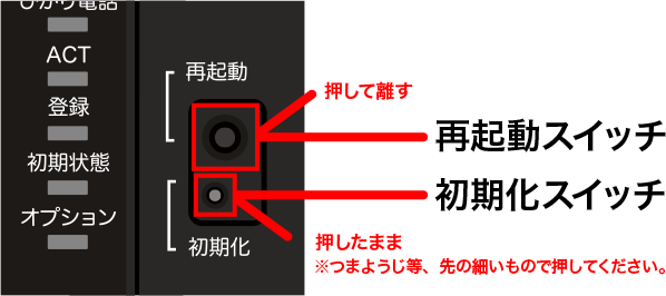 初期化スイッチを押し続けた状態で、再起動スイッチを押して離します。