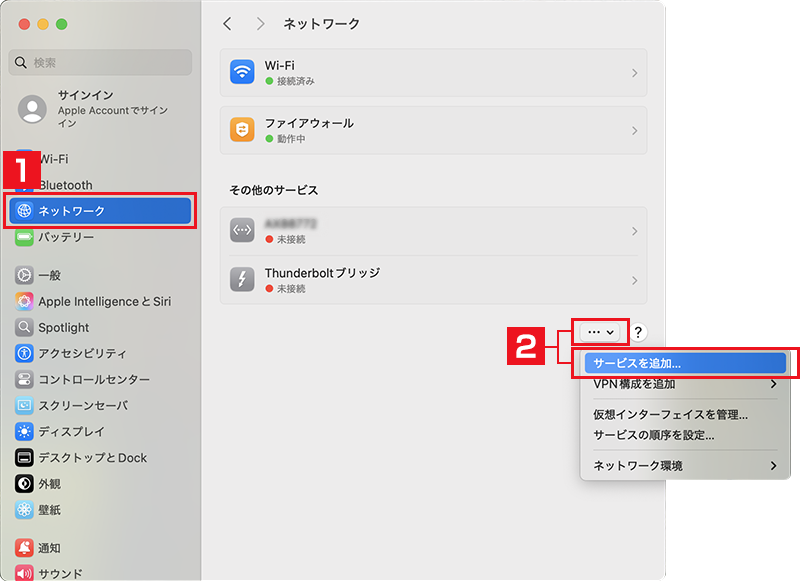詳細ポップアップメニューをクリックしてから、[サービスを追加]を選択してください。