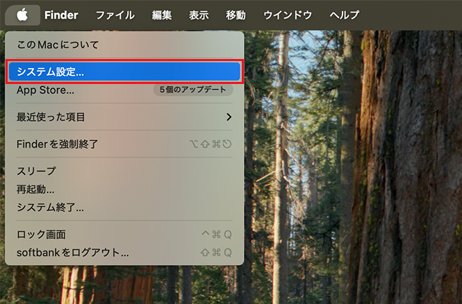 左上のアップルメニューから[システム環境設定]アイコンをクリックします。