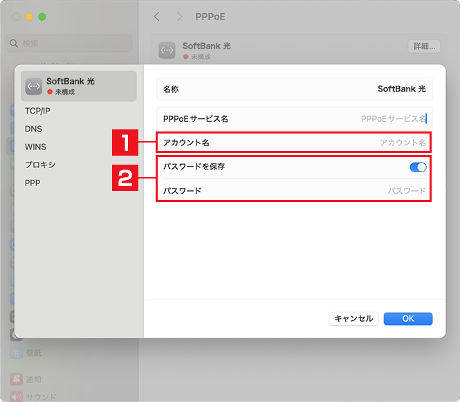 ユーザー認証設定(PPPoE)をする