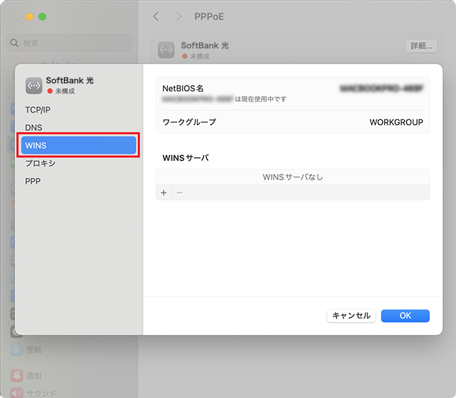 (WINS(Windowsインターネットネームサービス)の設定を指定された場合)