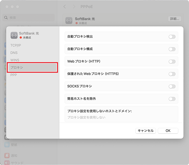 (プロキシサーバの設定を指定された場合)
