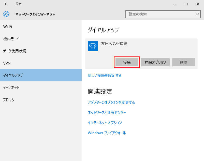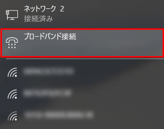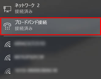 - [ブロードバンド接続]という名称は[Windows 10設定・確認方法]の手順9で設定した接続名により異なります。