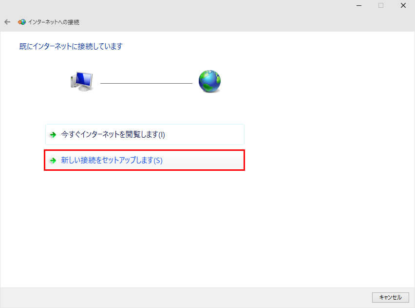 [新しい接続をセットアップします]を選択すると、下記画面が表示されます。[既存の接続を使用しますか?]と表示された場合