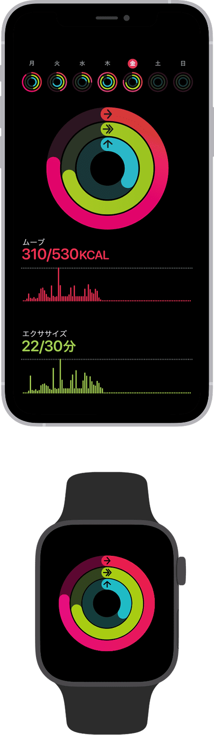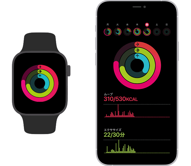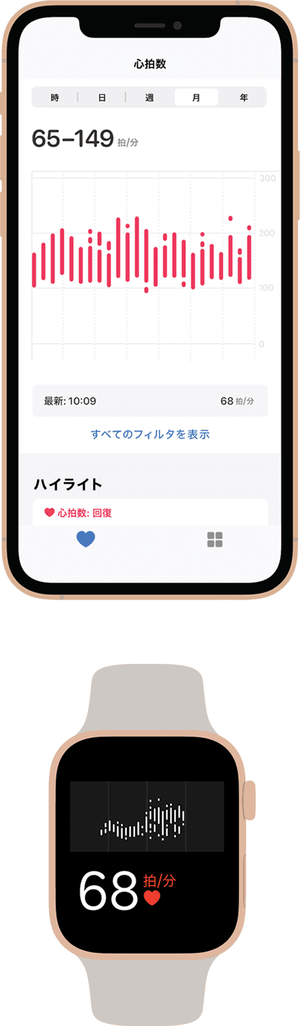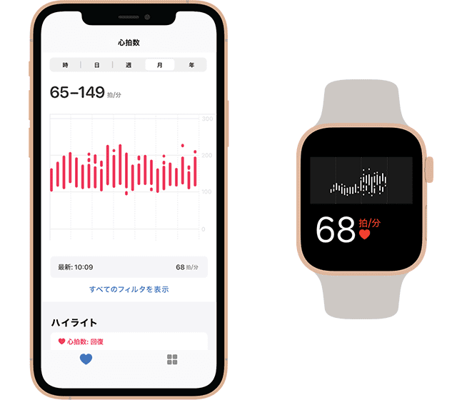 Apple Watch で心拍数を確認して、iPhone で時間、日、週、月、