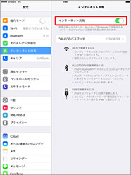 「インターネット共有」が「オン」になります。