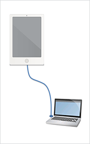 タブレットとパソコンなどをUSBケーブルで接続します。