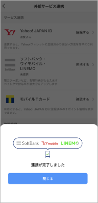 - 「ソフトバンク・ワイモバイル・LINEMO」が連携済みになっている