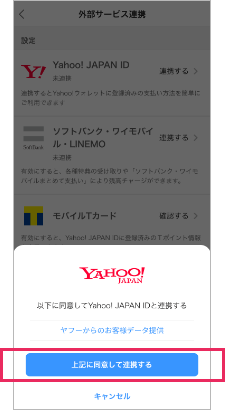 外部サービス連携画面で「Yahoo! JAPAN ID」をタップしてください。