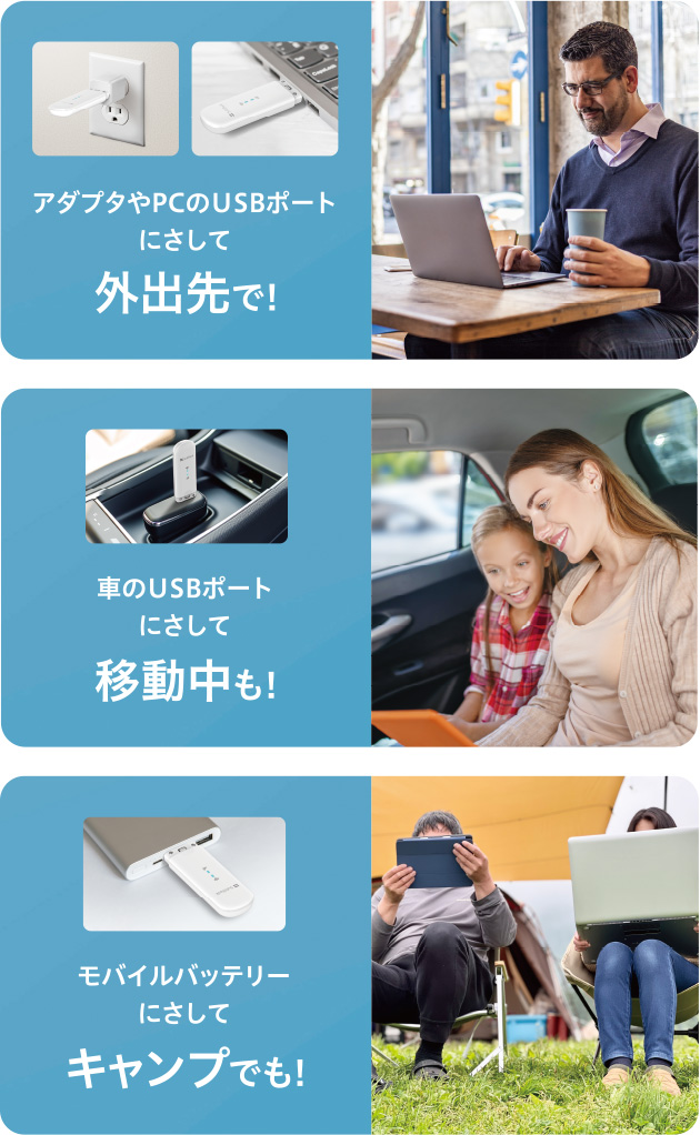 Wi-Fi搭載の機器を手軽に使える。