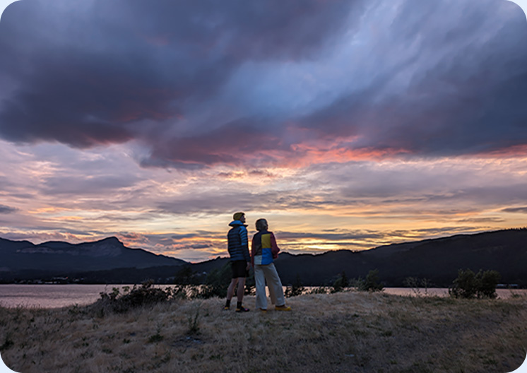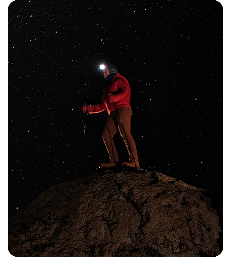 日没時の人物の表情も夜景モードと
