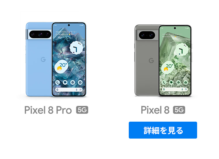 1 Google Pixel の以前のモデルとの比較。2 Google Pixel アップデートが提供される期間は、米国の Google ストアでのデバイス販売開始日から 7 年間です。詳しくは、 g.co/pixel/updates をご覧ください。