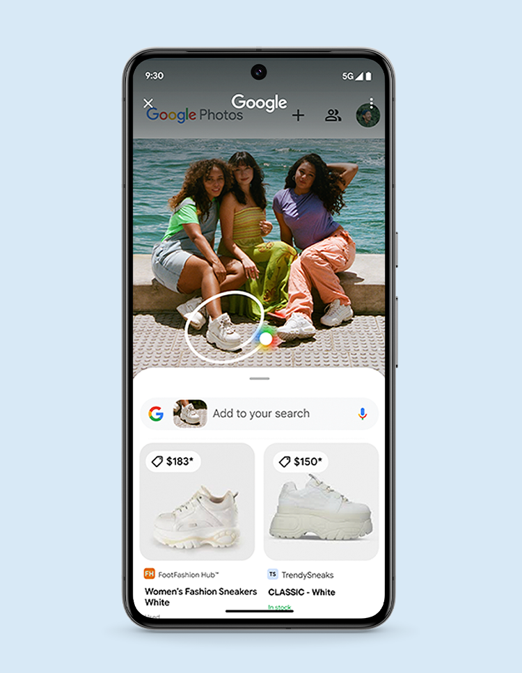調べたいものをアプリ内で直接囲うだけで検索が可能に。