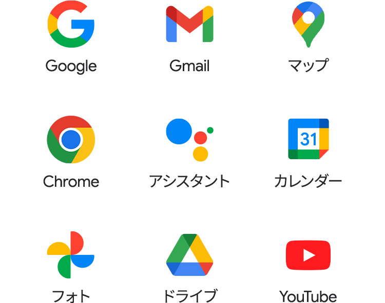 にはおなじみの Google アプリが