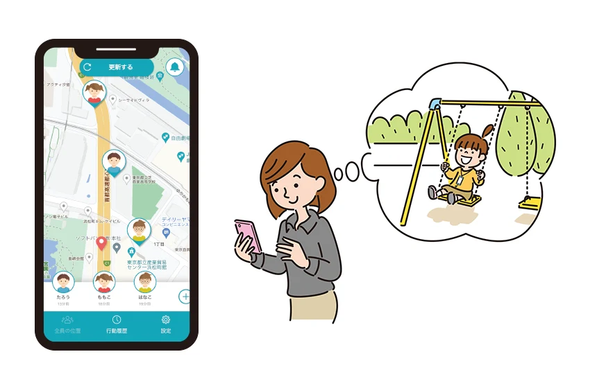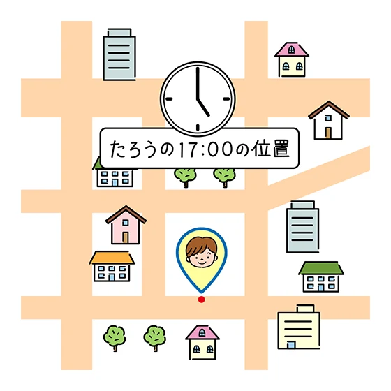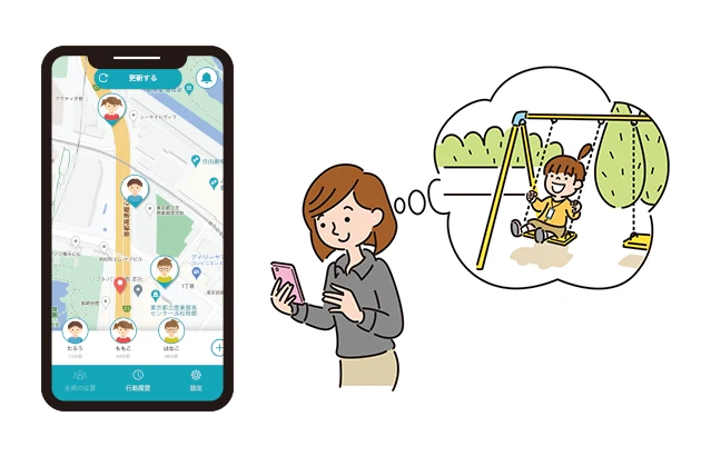 保護者のスマートフォンからお子さまの居場所をいつでも確認でき、