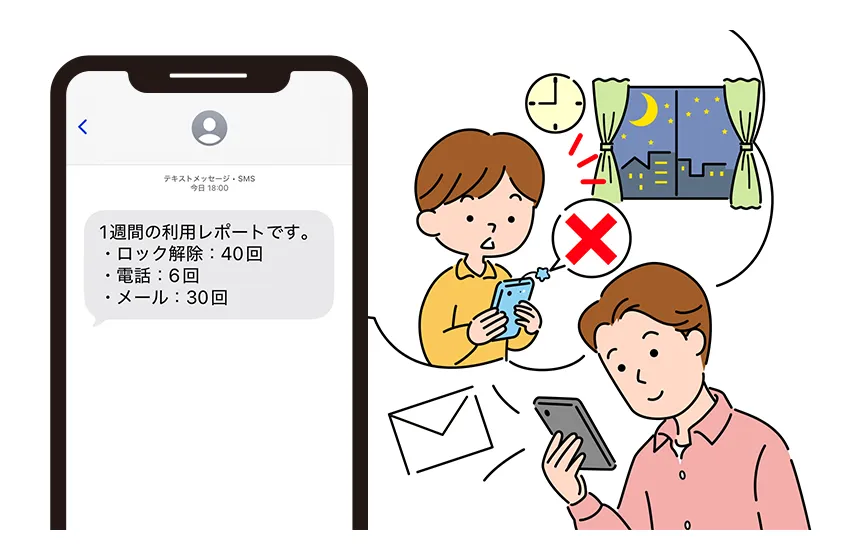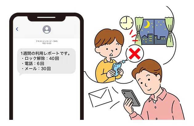 キッズフォンの利用状況が毎週メールで届くレポート機能や