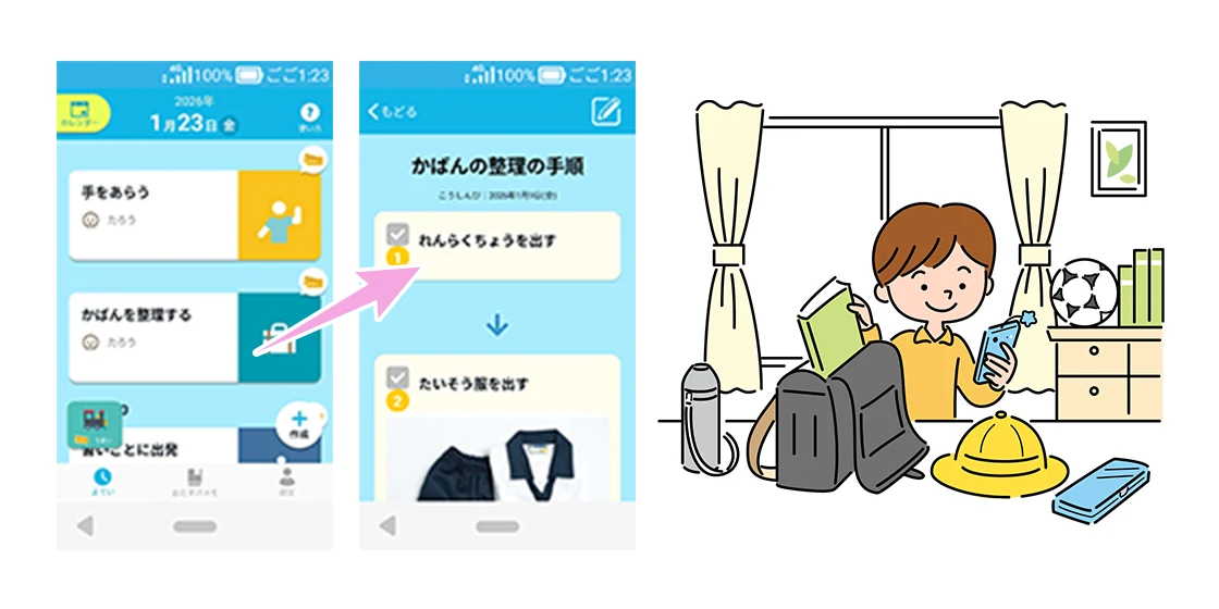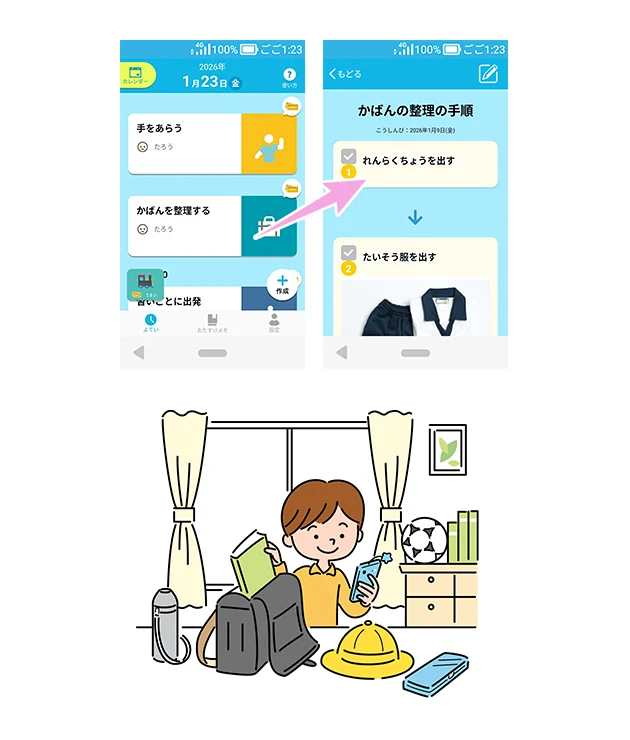 ご自宅などのWi-Fiを登録すれば、お子さまが家に「着いたよ」「出たよ」を
