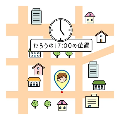 お子さまの現在地と、過去3日分の位置情報を地図で確認できます。