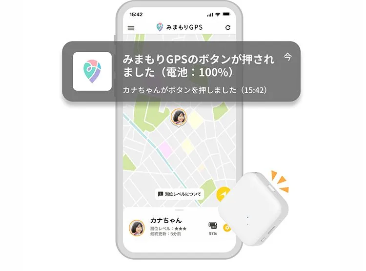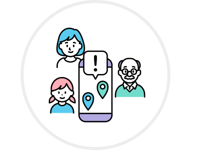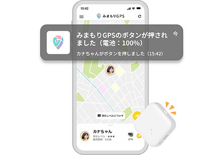 ご家族でボタンを押すルールを決めておけば、迎えに来てほしいとき、迷子になってしまったときに、ボタンひとつで連絡できます。