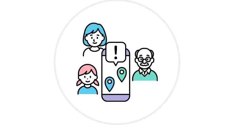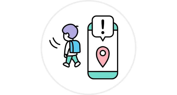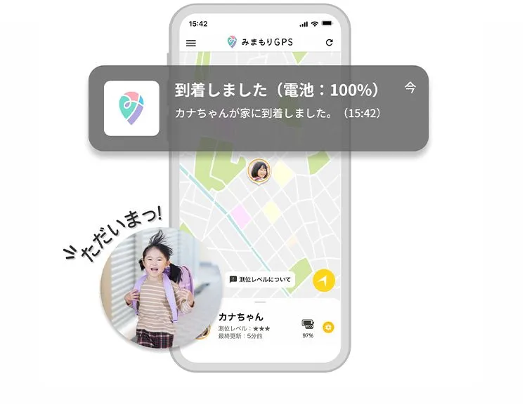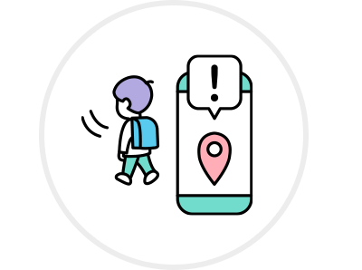 みまもりエリア通知は、お子さまの「着いたよ/出たよ」を自動で検知してスマホにお知らせしてくれます。