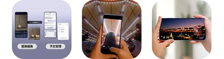 - *1フォトアシストはネットワークへの接続とSamsungアカウントへのログインが必要です。フォトアシストで編集すると、画像がリサイズされます。画像がAIによって生成されたことを示すために、保存時に出力画像にウォーターマークが重ねられます。(特許ブランドやキャラクターコンテンツの複製を防止するための措置が講じられていますが、複製の回避を保証するものではありません。)生成された出力画像の正確性と信頼性は保証いたしません。