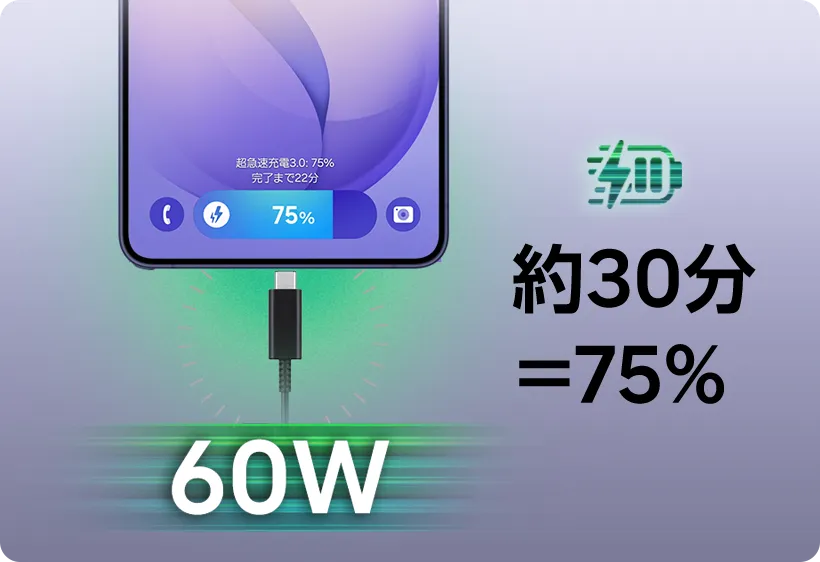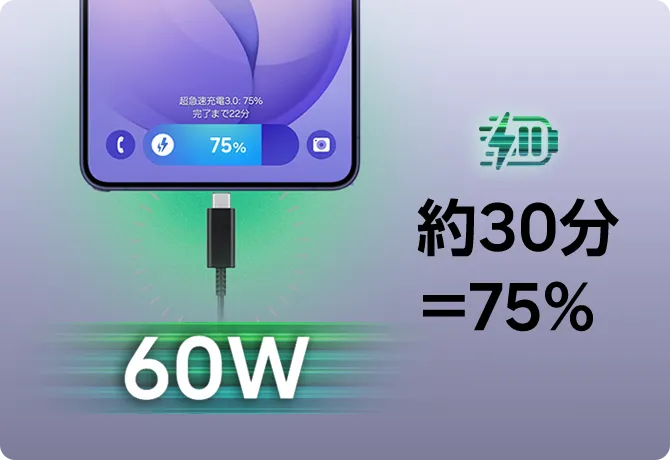 30分で約75%*5まで一気に充電でき、