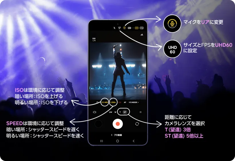 プロ級の動画撮影ならGalaxyの「プロ動画*12」。