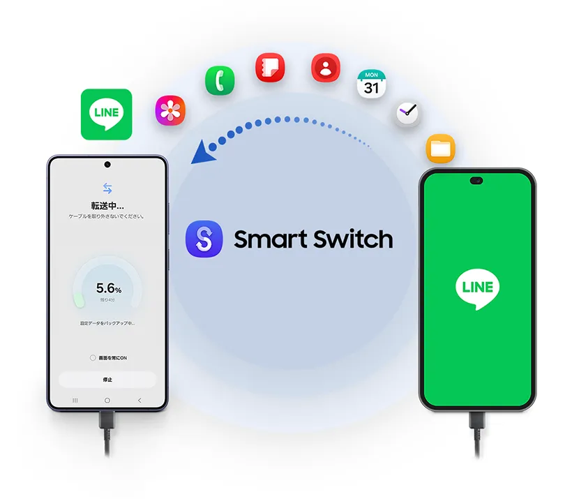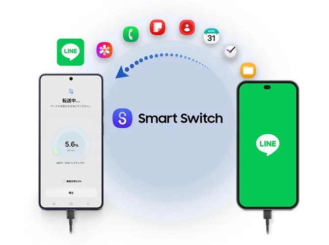 LINEは有線接続の場合のみ、iOSからGalaxyにデータ移行が可能です。