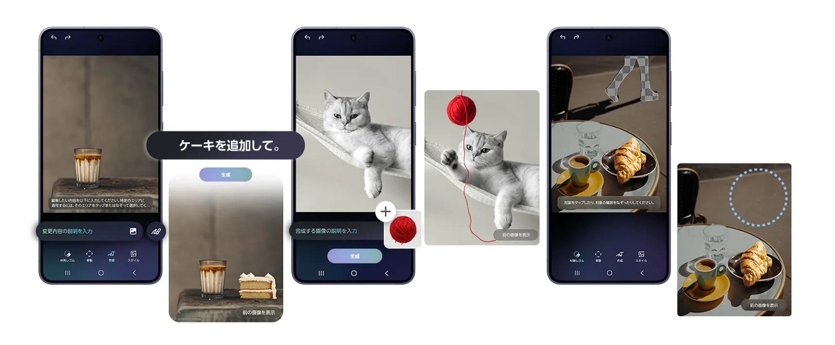 アプリの追加は不要でGalaxy AIが写真編集をもっと自由に、もっと手軽に。