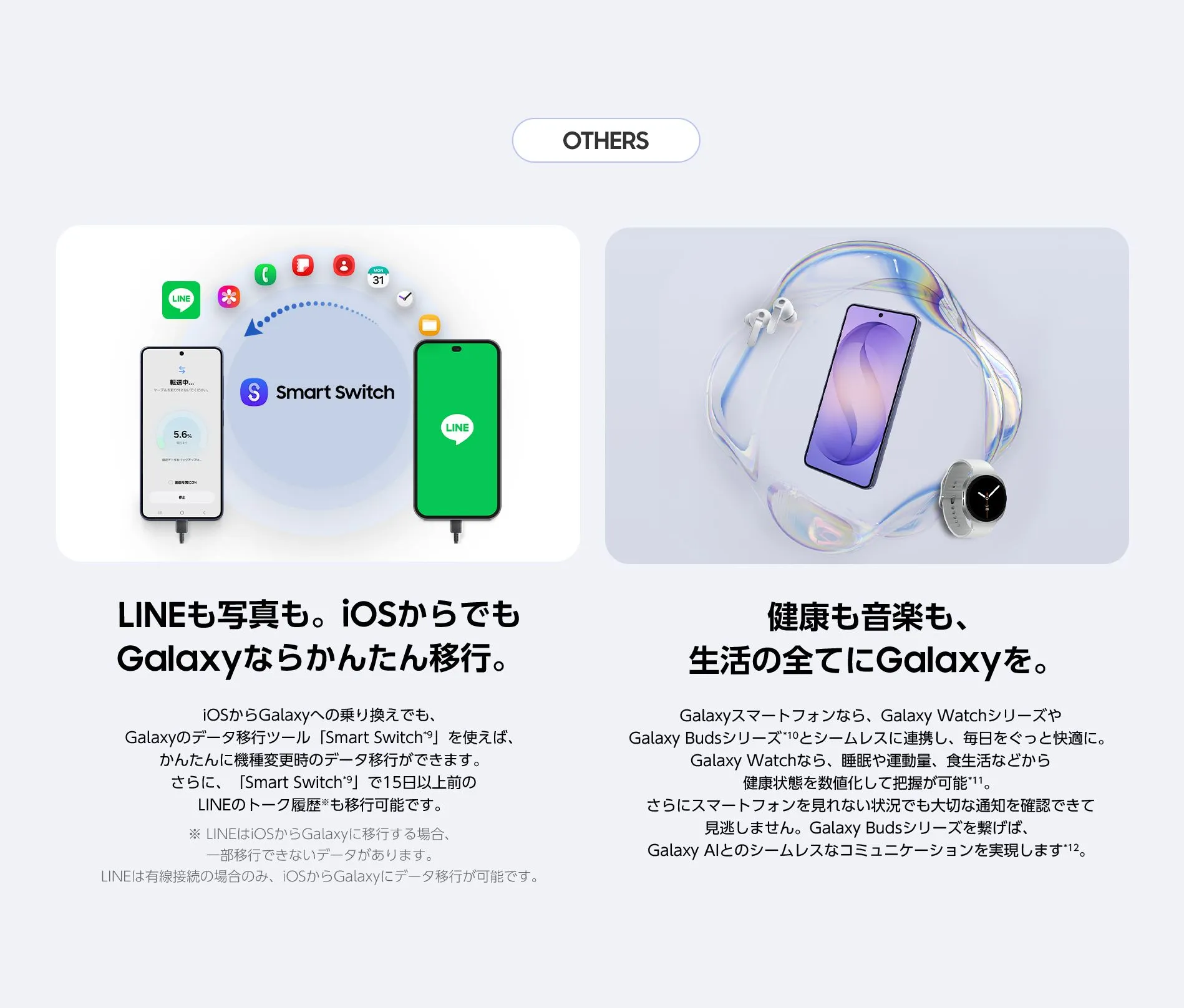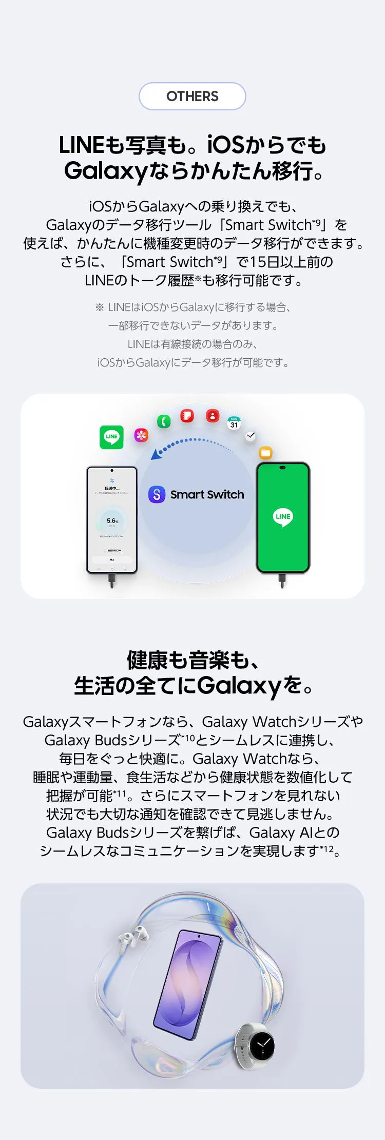 詳細はSamsung公式Webサイト(https://www.samsung.com/jp/apps/smart-switch/)をご確認ください。 - *10Samsung Galaxyデバイスはそれぞれ別売りです。
