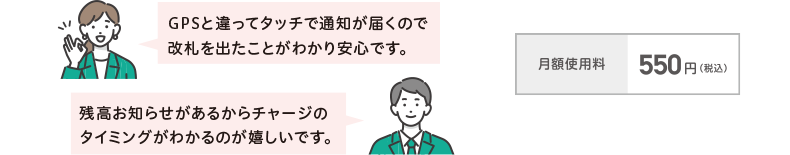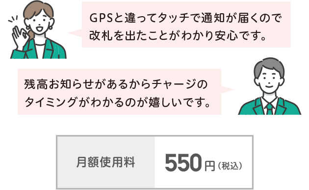 交通系ICカードのタッチで通知が届くみまもりサービスの、「タッチでメール」に対応しています。